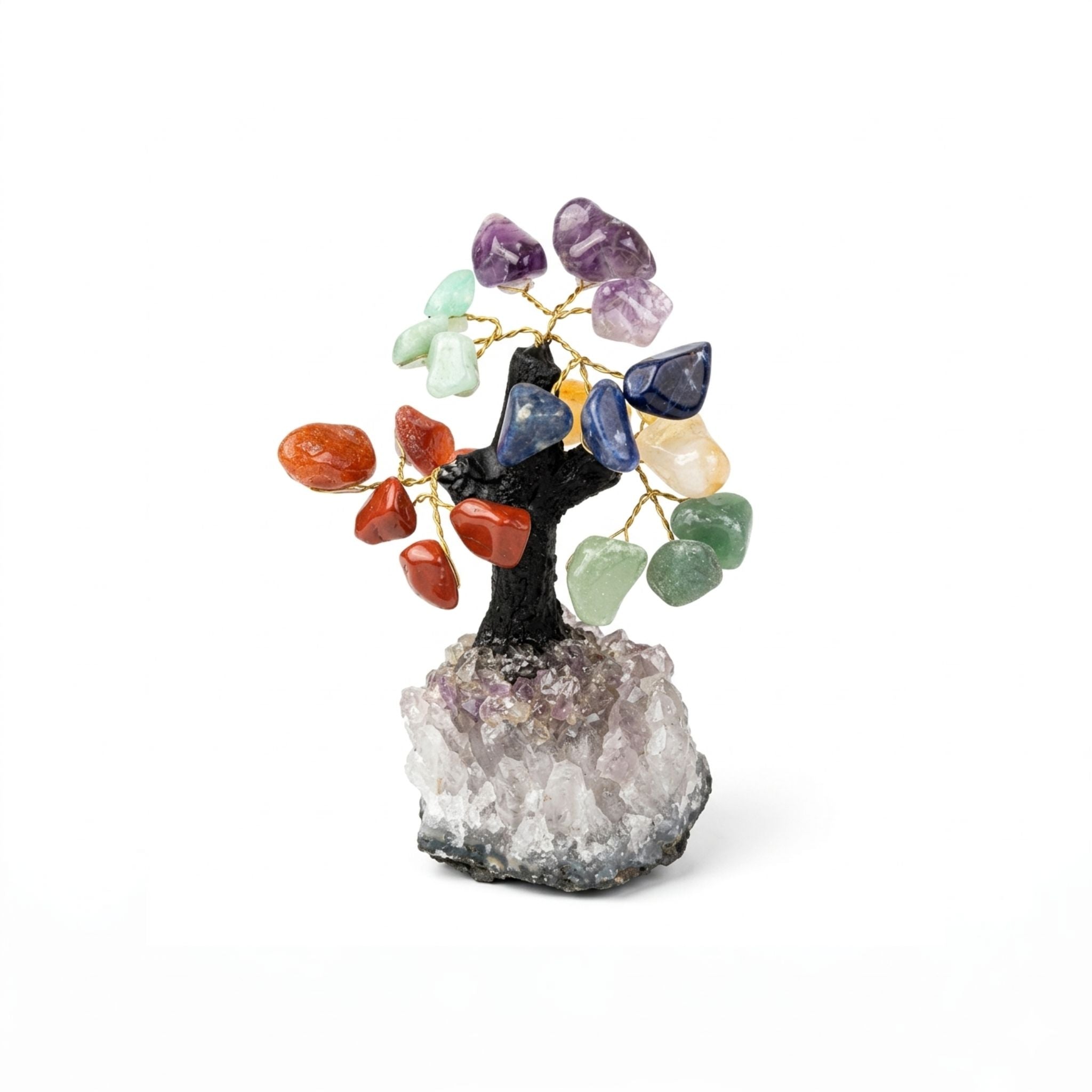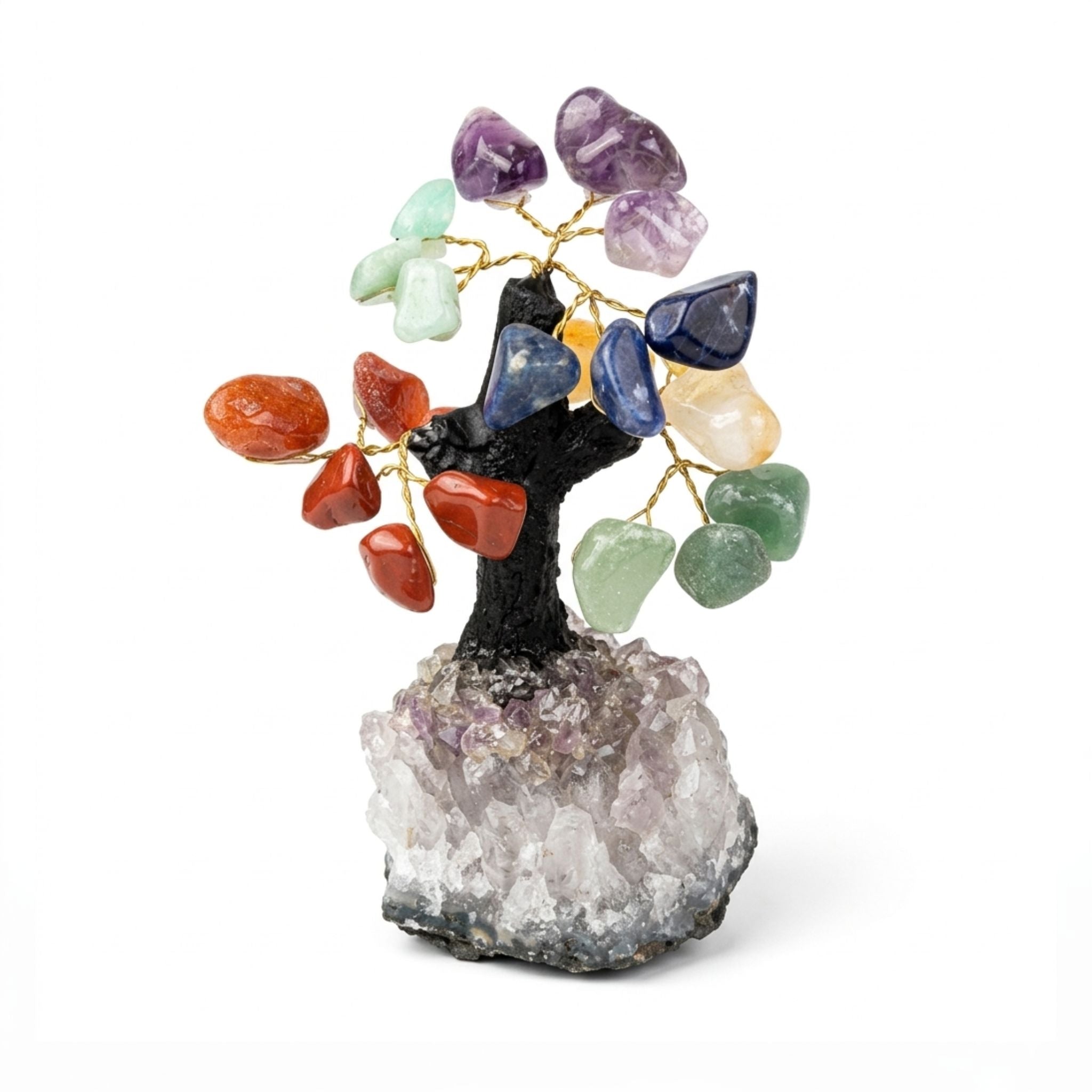 Árvore da Felicidade com as 7 Pedras dos Chakras. Um poderoso elemento decorativo e vibracional que reúne a energia de sete cristais fundamentais para alinhar os teus centros energéticos e harmonizar o ambiente.