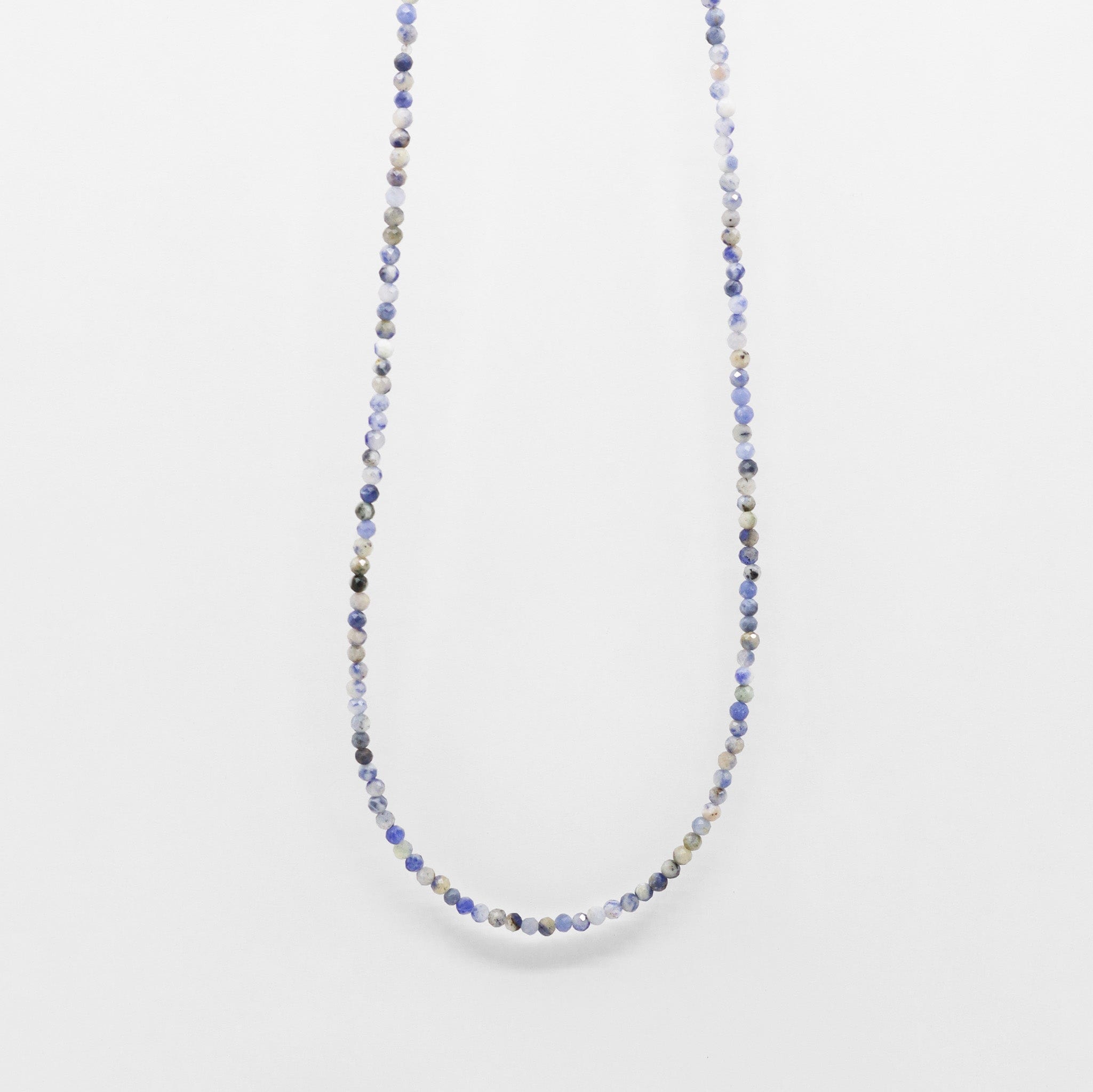 Colar com contas de 3mm de Sodalita facetado com fecho em prata 925. A Sodalita fortalece a comunicação, promove a clareza mental e auxilia na tomada de decisões com confiança.