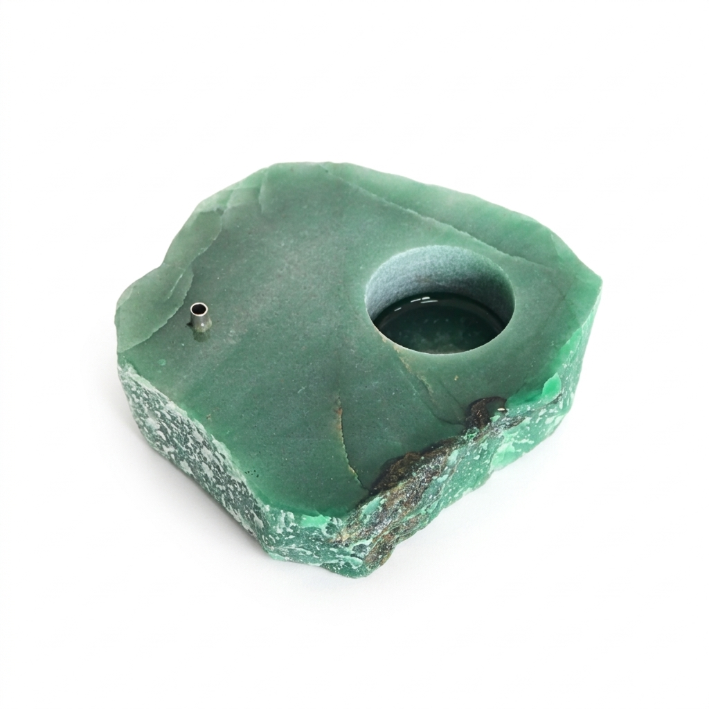 Incensário e Porta-Vela de Quartzo Verde Bruto. Atraia vitalidade e a energia da abundância para o seu lar com este suporte vibracional que une a força da natureza ao seu ritual de purificação.